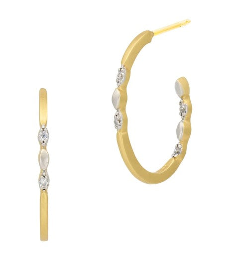 The Armor of Hope Mini Hoop elevates your everday look with luminous matte gold and sparkling stone detail. Featuring intricate workmanship both inside and outside the hoop with sparkle at every angle.