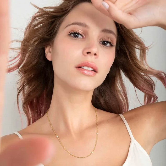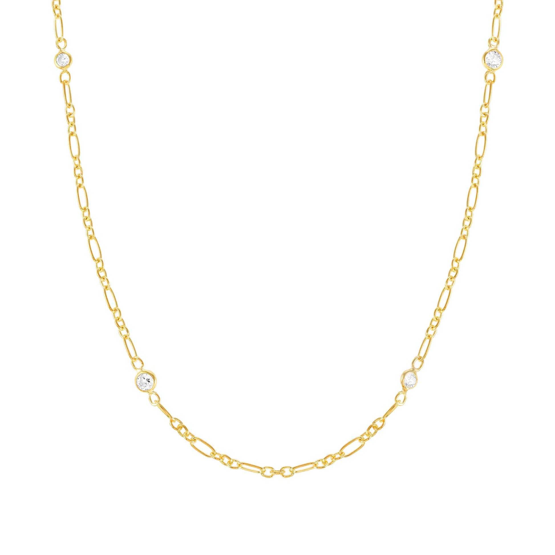 Sterling silver link necklace, 24K yellow gold plated and White Cubic Zirconia.