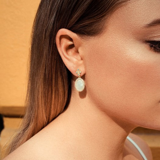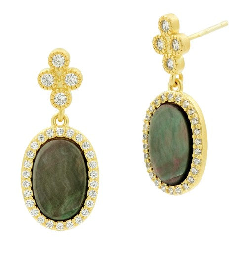 The Touch of Color Earrings are a great day to night style to dress your ears. Featuring a center stone framed with sparkling pavé stone and signature clover post design.